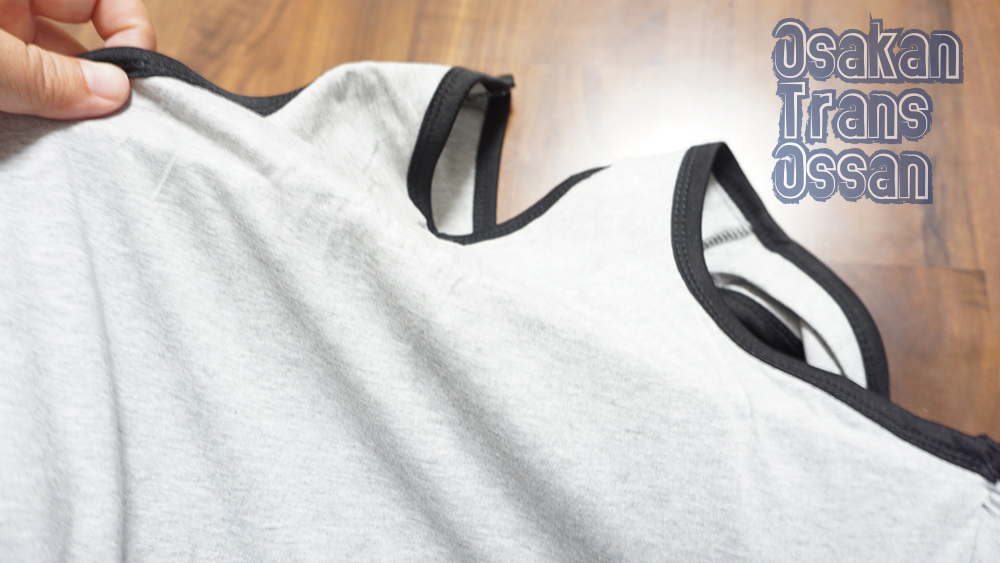 この時のナベシャツは、両脇ゴムタイプ。両サイドについている強力バンドで胸を潰す!っていうコンセプトみたい。